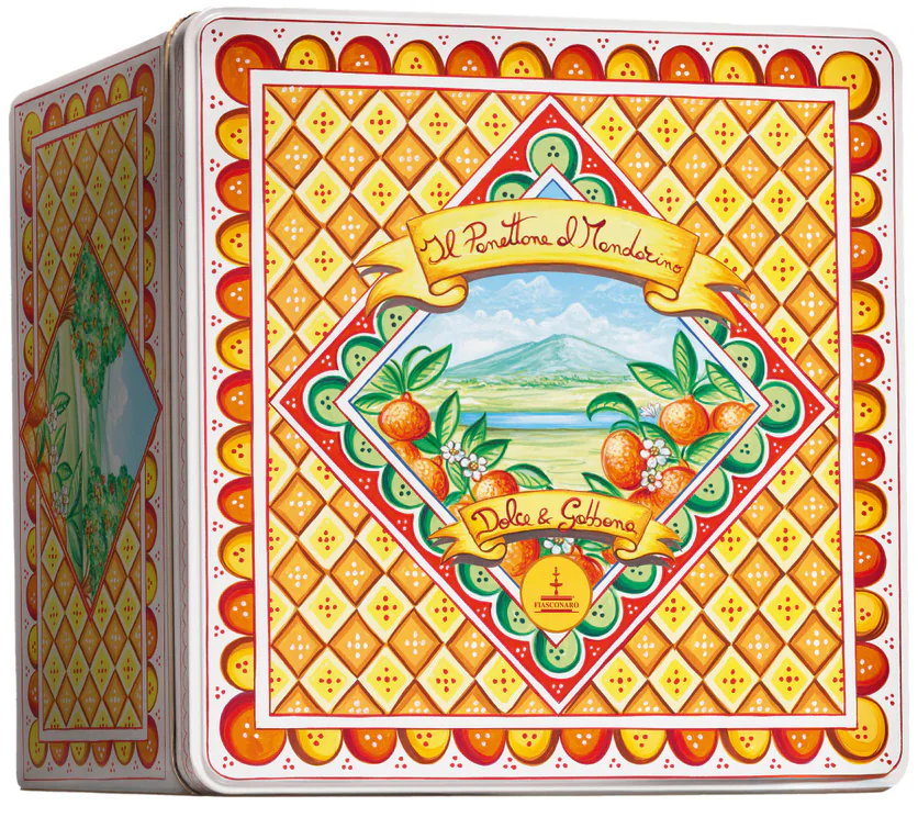 Hier trifft Kreativität auf Genuss: Der luftig-lockere Panettone mit kandierten Mandarinenstücken veredelt die Weihnachtstafel Jahr für Jahr aufs Neue. Der typisch mailändische Panettone wird mit fruchtigen Aromen Siziliens neu interpretiert. Ganz ohne Rosinen und verpackt in einer stilvollen Blechdose aus der edlen Dolce & Gabbana Kollektion von Fiasconaro.