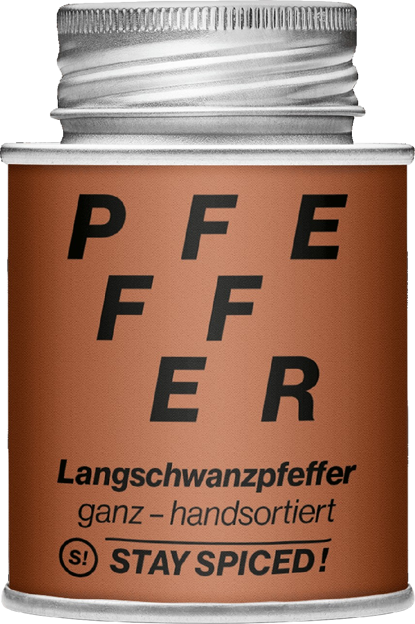 Verwendungshinweis: Der Bengalische Langschwanzpfeffer hat einen besonders hohen Anteil an ätherischen Ölen. Diese sind für das intensive Aroma verantwortlich. Das beste Geschmackserlebnis erreichst du, wenn du die Pfefferkörner erst kurz vor der Verwendung mörserst oder mahlst.